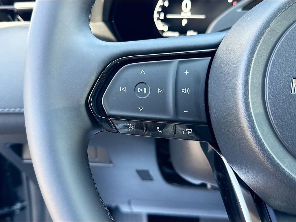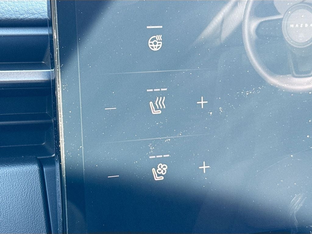 Inside, the Premium Plus trim surrounds you with technology and comfort. Highlights include leather trimmed seats, ventilated and heated front seats, heated rear seats, heated steering wheel, power driver seat with memory, power passenger seat, dual zone automatic climate control, rear air vents, ambient lighting, a power panoramic moonroof, and a large **15.6 inch color center display** with **Google built in**, **wireless Apple CarPlay**, **wireless Android Auto**, wireless phone charging, Mazda Connected Services, and a **Bose 12 speaker audio system**. A **360 degree view monitor** and **backup camera** make parking and maneuvering easy and stress free.