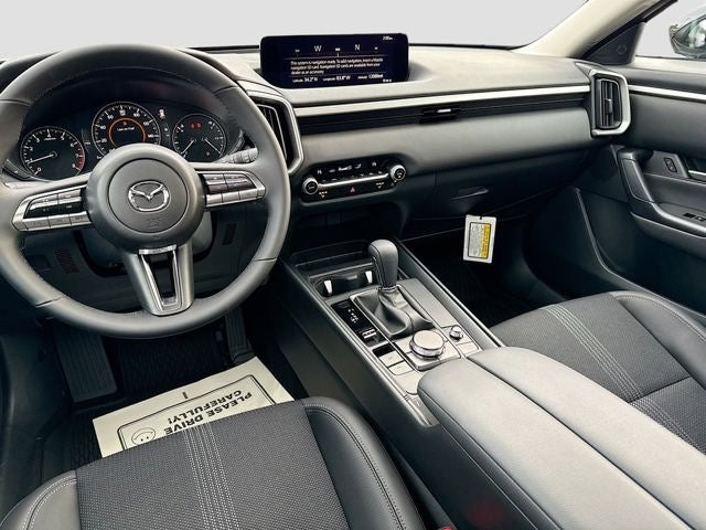 Inside, the Preferred Package elevates comfort with an 8 way power driver seat with power lumbar support, heated front seats, a panoramic moonroof, wireless phone charger, dual zone automatic climate control, rear air conditioning vents, 10.25 inch color display, Mazda Connected Services, Alexa Built In, wireless Apple CarPlay, wireless Android Auto, four USB Type C ports, a leather wrapped steering wheel, leather wrapped gear selector, and an overhead console with LED lighting. The 40 60 split folding rear seat expands your cargo versatility for bigger weekend plans.