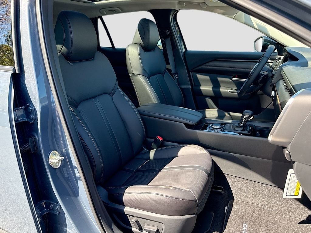 Inside, the cabin is refined and feature rich with leather trimmed seats, power driver seat with lumbar support and memory, power passenger seat, heated front and rear seats, and a heated leather steering wheel. Technology highlights include a 10.25 inch center display, Active Driving Display, Mazda Online Navigation, Alexa built in, wireless Apple CarPlay, wireless Android Auto, wireless phone charger, and a Bose 12 speaker premium audio system. A backup camera comes standard for added confidence.
