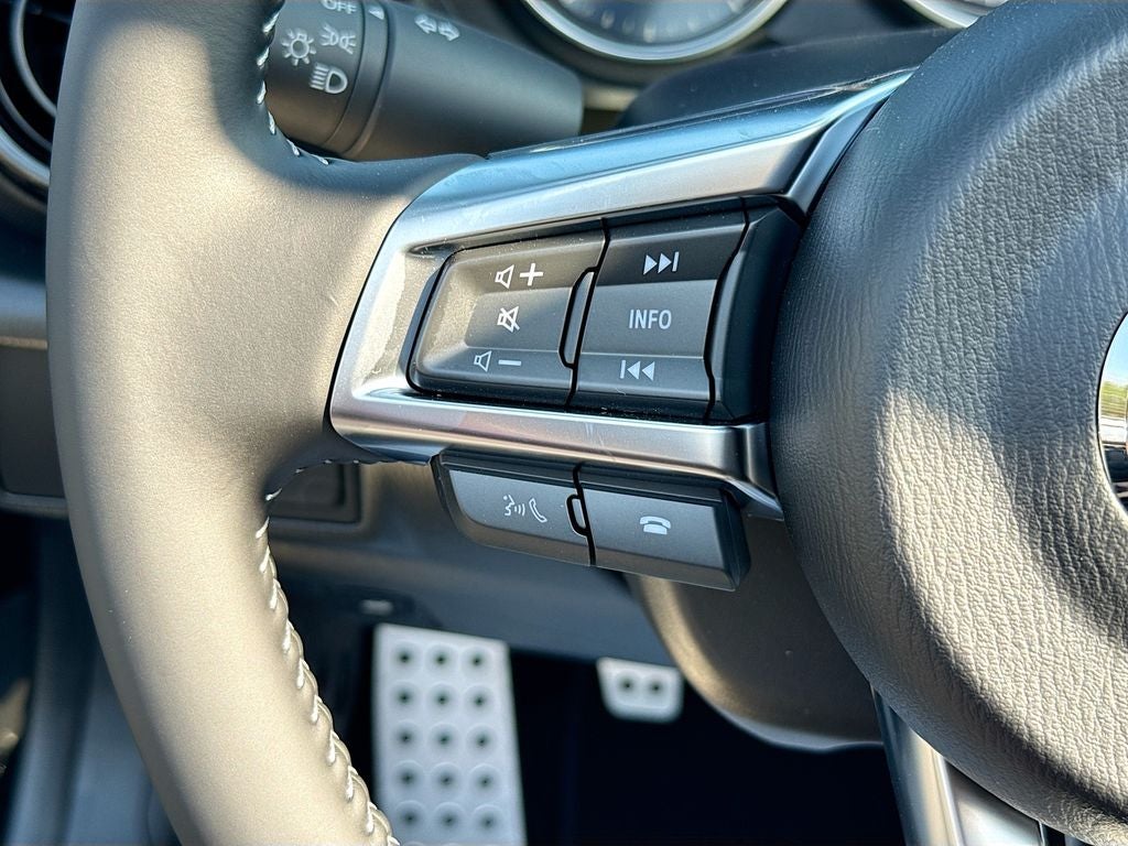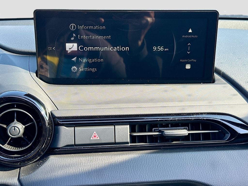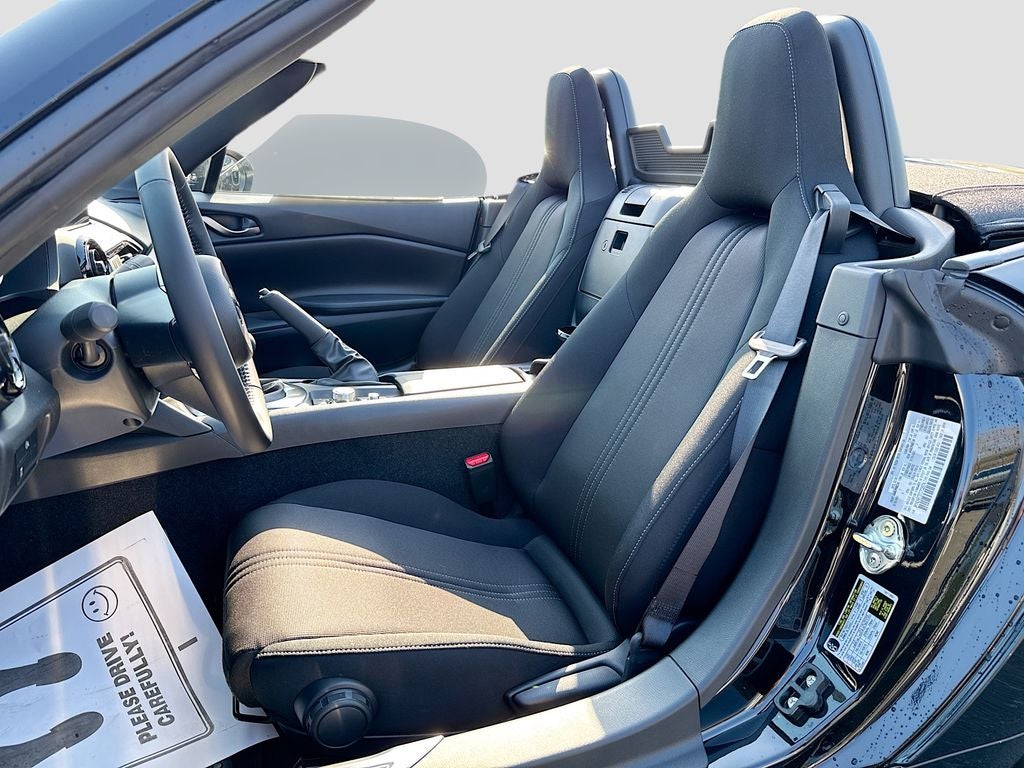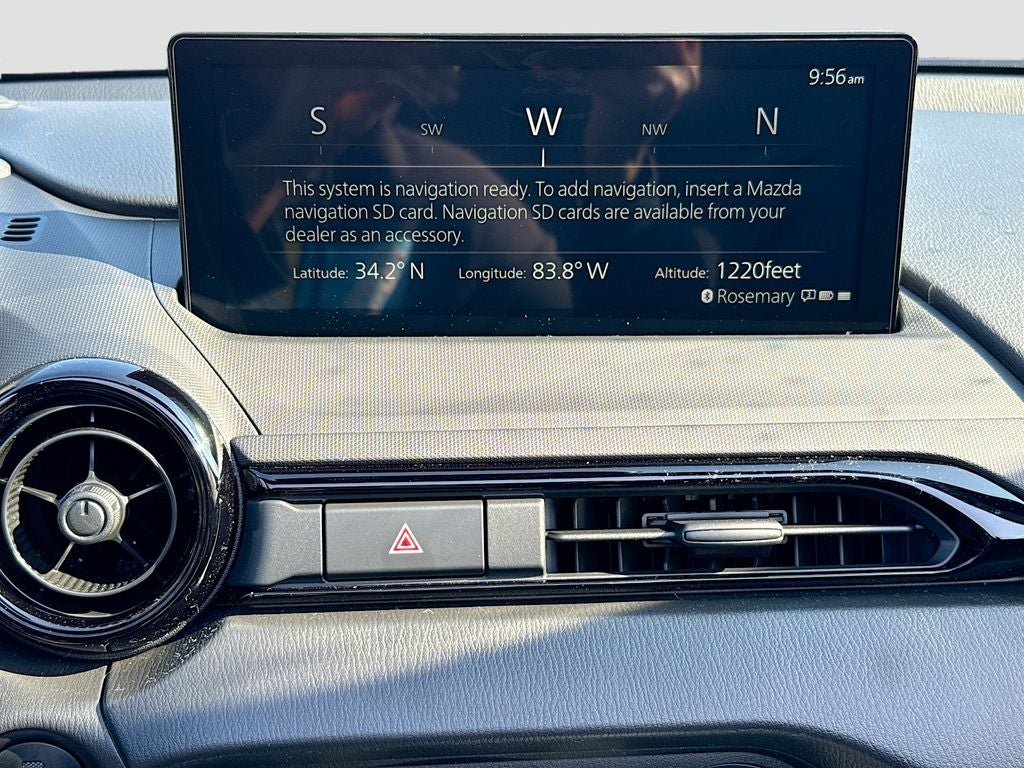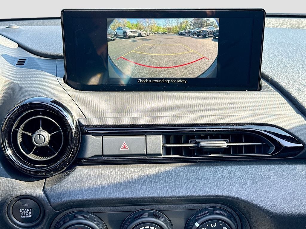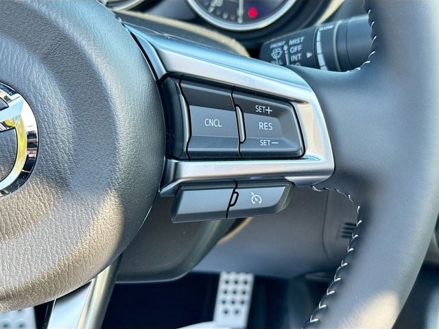 Inside, the cockpit is driver focused and simple by design. Features include cloth trimmed bucket seats, leather wrapped steering wheel, leather wrapped shift knob, tilt and telescoping steering column, air conditioning, push button start, Mazda Advanced Keyless Entry, 8.8 inch color center display, Apple CarPlay, Android Auto, Alexa built in, Bluetooth® hands free phone and audio, multi function commander control, and a backup camera for everyday confidence.