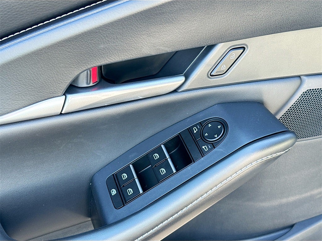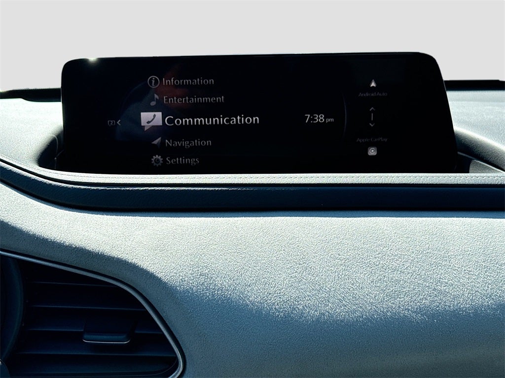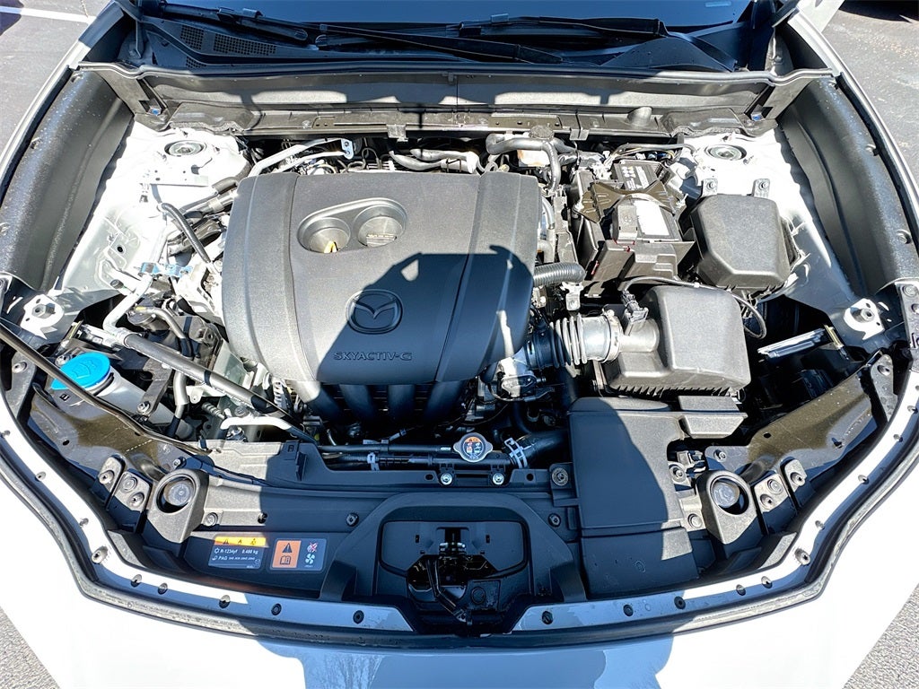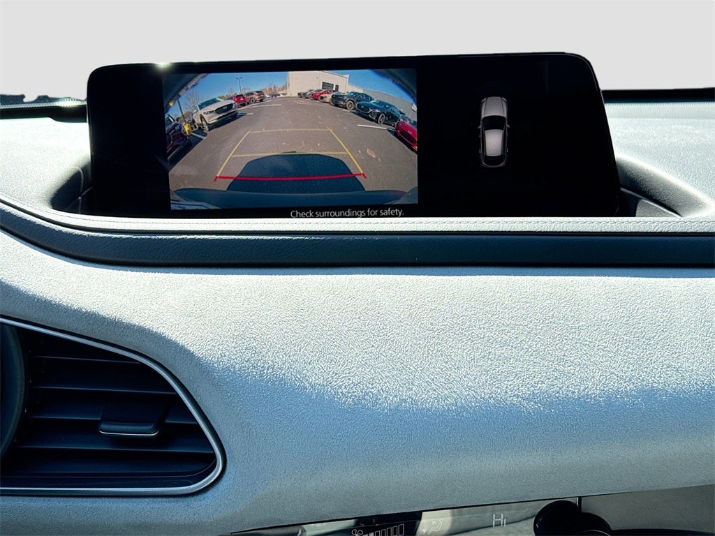 The AIRE trim adds a stylish upscale feel through unique White Leatherette trimmed seats with cloth inserts heated front seats a power driver seat with lumbar support and two position memory dual zone automatic climate control rear vents illuminated vanity mirrors Mazda Advanced Keyless Entry and a 10.25 inch color center display with touchscreen functionality compatible with Apple CarPlay and Android Auto. You will also enjoy wireless phone charging Alexa Built In Bluetooth® hands free audio Mazda Connected Services an 8 speaker audio system two USB C inputs and carpeted floor mats. Practical accessories such as black lug nuts and wheel locks the cargo tray and high wall all weather floor mats provide added protection and style.