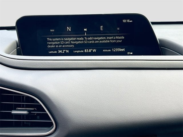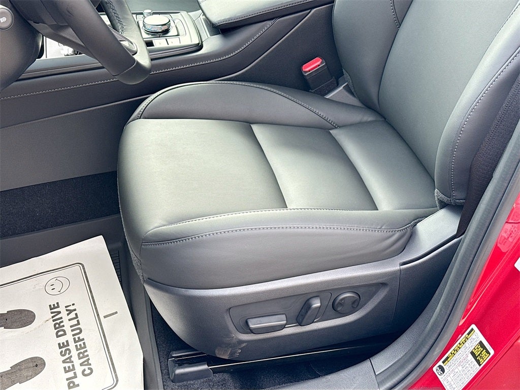 Inside the cabin you will enjoy a premium interior featuring leatherette trimmed seats a power driver seat with lumbar support and two position memory heated front seats a leather wrapped steering wheel leather wrapped shift knob dual zone automatic climate control with rear vents an 8.8 inch center display the Mazda Commander Control Alexa built in Mazda Connected Services and wireless Apple CarPlay and wireless Android Auto. Additional features include Bluetooth® hands free audio AM FM eight speaker audio two USB C inputs illuminated vanity mirrors a rear armrest with cup holders and the added convenience of all weather high wall floor mats and a cargo tray.