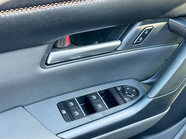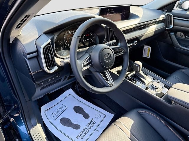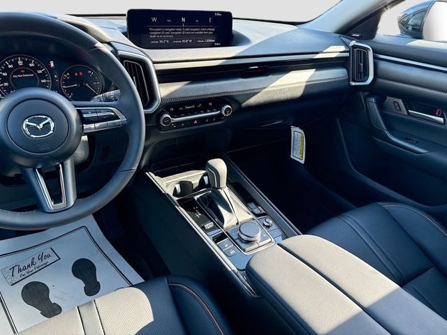 This Hybrid Premium AWD trim offers an upscale driving experience with features designed for everyday comfort and modern convenience, including power panoramic moonroof, heated and ventilated front seats, leather trimmed seating, leather wrapped steering wheel, driver seat memory, dual zone automatic climate control, rear air conditioning vents, wireless Apple CarPlay, wireless Android Auto, wireless phone charger, Bose 12 speaker premium audio system, Alexa built in, Mazda Connected Services, multi function commander control, and a power rear liftgate. Exterior highlights include 17 inch black metallic alloy wheels, LED headlights with automatic high beams, rain sensing wipers with heated wiper park, roof rails, rear privacy glass, and deep tinted glass.