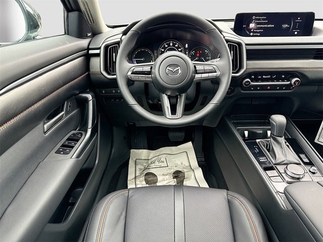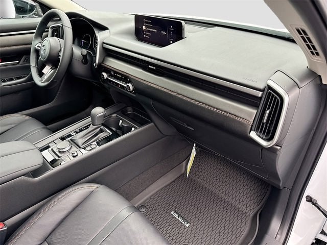 Inside the cabin you will find an elevated driving experience with Black Leather seats heated front seats ventilated front seats driver seat memory a 6 way power passenger seat a power panoramic moonroof Dual Zone Automatic Climate Control rear air conditioning vents and a wireless phone charger. The 10.25 inch color center display pairs with wireless Android Auto wireless Apple CarPlay Bluetooth® hands free technology Mazda Connected Services and a premium Bose 12 speaker audio system for crisp rich sound on every drive.
