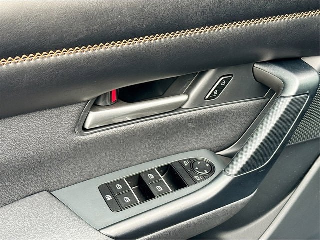 Inside you will enjoy a thoughtfully designed cabin with ventilated front seats heated front seats leather trimmed seating an 8-way power driver seat with power lumbar a 6-way power passenger seat driver seat memory an auto dimming rearview mirror dual zone climate control rear air conditioning vents a leather wrapped steering wheel and leather wrapped gear selector. Technology is top tier with a 10.25-inch color center display a Bose 12 speaker audio system wireless Android Auto wireless Apple CarPlay wireless phone charging Alexa Built in Mazda Connected Services four USB type C inputs a retractable cargo cover and the added Weather Package for extra practicality.