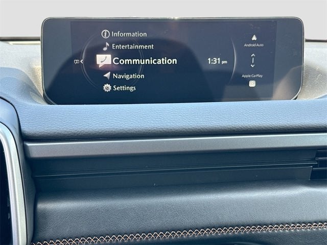 Five passenger seating, eight way power driver seat with power lumbar, heated front seats, sixty forty split fold down rear seat, leather wrapped steering wheel and gear selector, Mazda Advanced Keyless Entry, push button start, four USB Type C inputs, power panoramic moonroof, ten point twenty five inch color center display, multi function commander control, dual zone automatic climate control, rear air conditioning vents, Mazda Connected Services, AM FM HD Radio, Bluetooth® hands free audio, wireless Android Auto, wireless Apple CarPlay, wireless phone charger, Alexa built in.