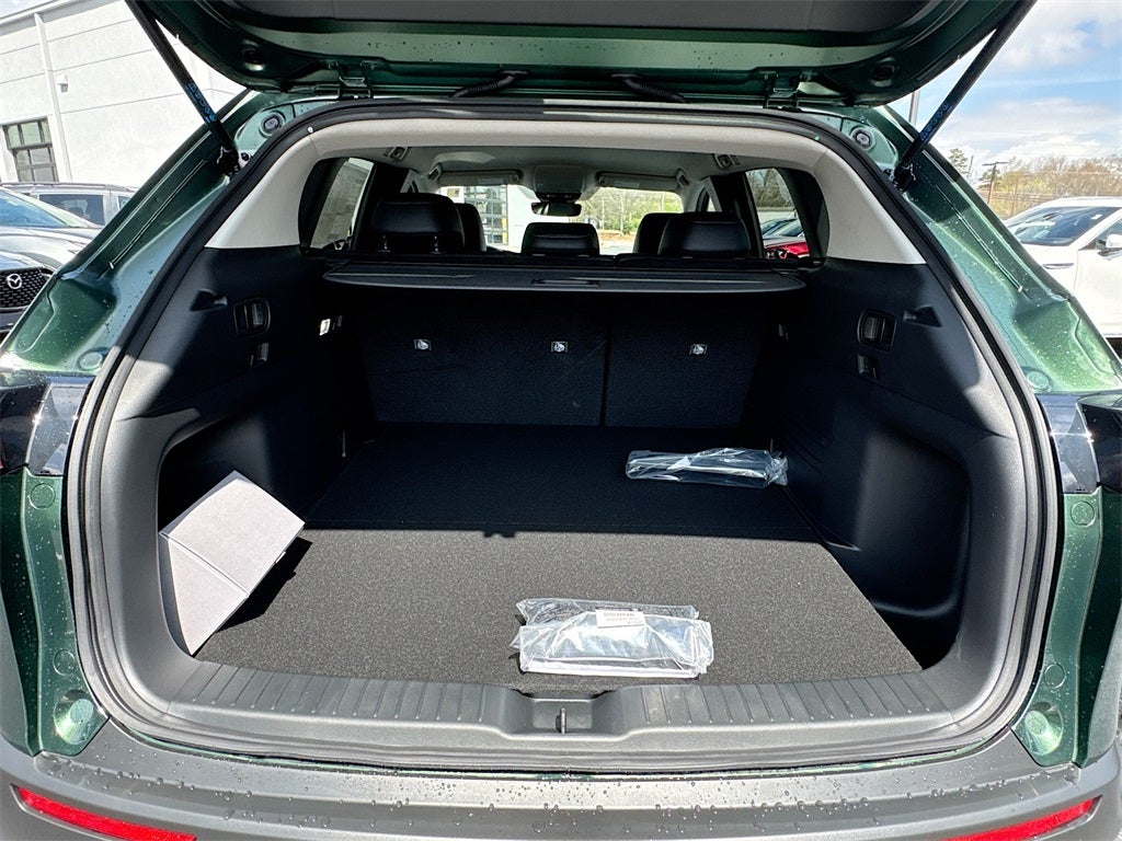 Inside the cabin you will find a comfortable and practical layout featuring five passenger seating a six way manual driver seat power windows power door locks a front center armrest with storage an electric parking brake dual USB type C inputs wireless Apple CarPlay wireless Android Auto Bluetooth® hands free phone and audio Mazda Connected Services Alexa built in an eight speaker audio system a wireless phone charger and a multi function commander control for simple system navigation. A retractable cargo cover black wheel locks and the cargo package add extra convenience and versatility.