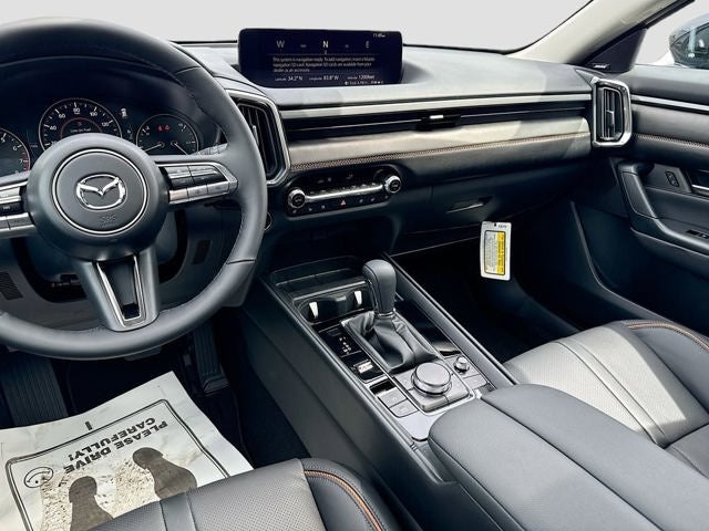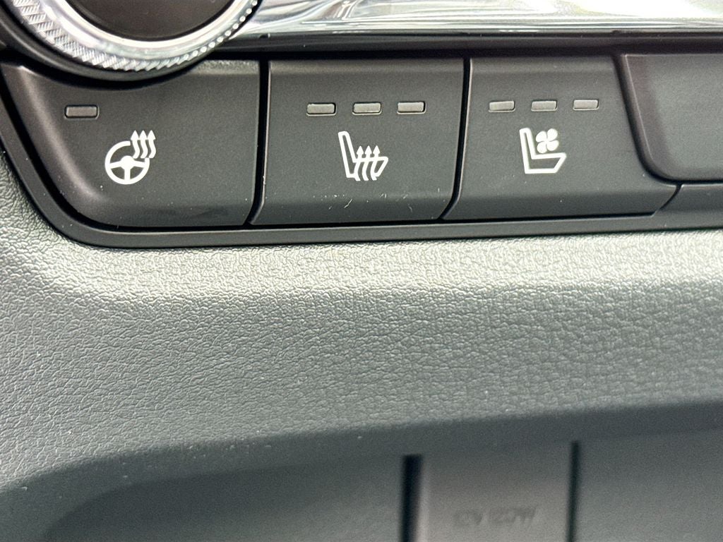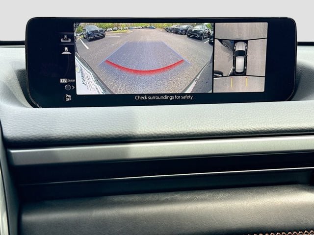 Inside, the cabin offers an upscale and driver focused layout with leather trimmed seating, power driver seat with lumbar support and memory, power passenger seat, heated front and rear seats, and a heated leather steering wheel. Technology highlights include a 10.25 inch color center display, Active Driving Display, Mazda Online Navigation, Alexa built in, wireless Apple CarPlay, wireless Android Auto, wireless phone charger, and a Bose 12 speaker premium audio system. A backup camera is included to make parking and reversing simple and confident.