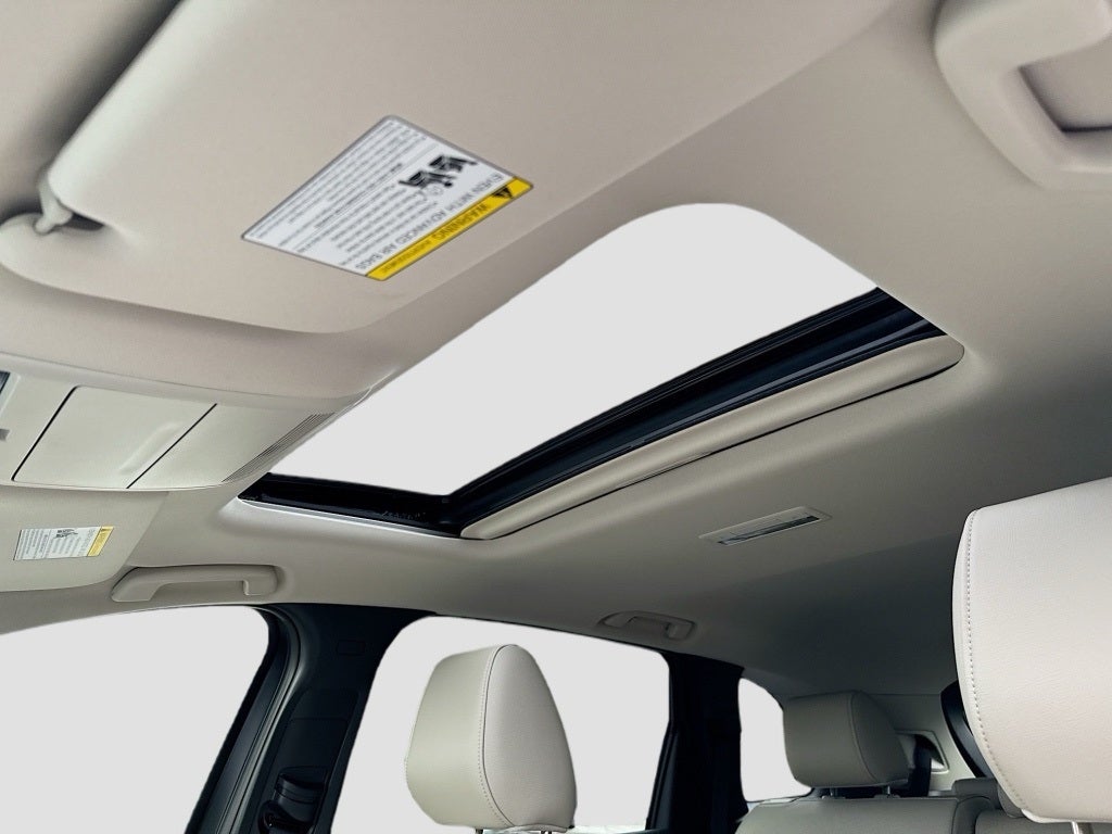 Exterior features include LED headlights auto on off headlights high beam control heated mirrors with turn lamps power liftgate rain sensing windshield wipers body colored roof spoiler rear privacy glass aluminum roof rails 21-inch alloy wheels P275 45 R21 all season tires liftgate garnish and the added roadside assistance kit wheel locks and first aid kit.