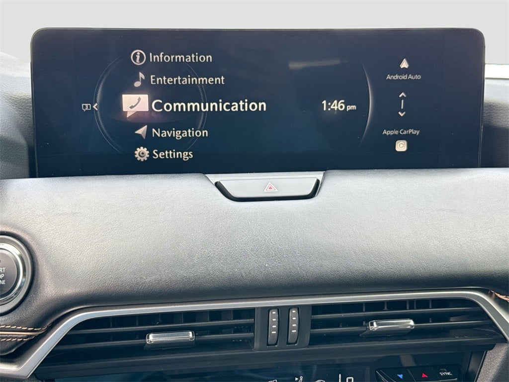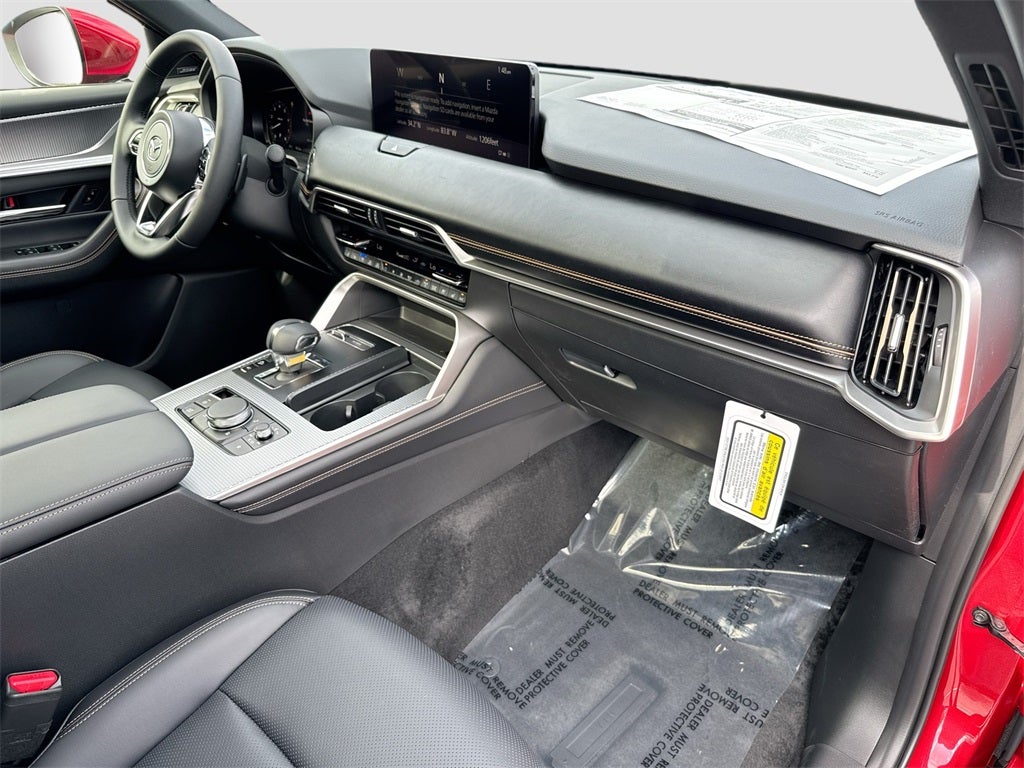 Inside, experience premium comfort with heated and ventilated front seats, heated second-row captain's chairs, heated leather steering wheel, driver seat memory, and dual-zone automatic climate control. Stay connected with 12.3-inch color center display, wireless Apple CarPlay and Android Auto, Bluetooth® hands-free audio, Mazda Connected Services, Alexa Built-In, and a Bose 12-speaker audio system. Convenience features include a power panoramic moonroof, hands-free power rear liftgate, and wireless phone charger.