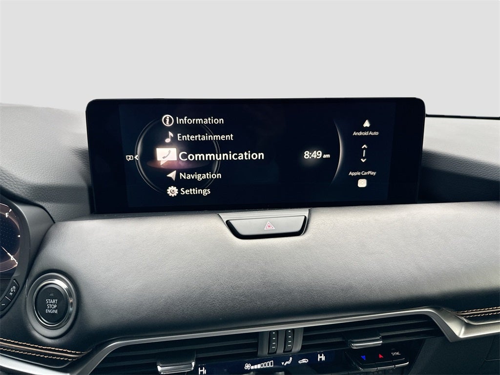 Comfort & Technology: Heated and ventilated front seats, heated second-row seats, heated leather steering wheel, Nappa leather-trimmed seating, 8-way power driver and passenger seats with memory, 12.3 color center display, 12.3 fully digital LCD meter, Mazda Online Navigation, Alexa Built-In, Wireless Android Auto and Apple CarPlay, Wireless Phone Charger, Bose 12-speaker premium audio, Bluetooth® connectivity, and Mazda Connected Services.