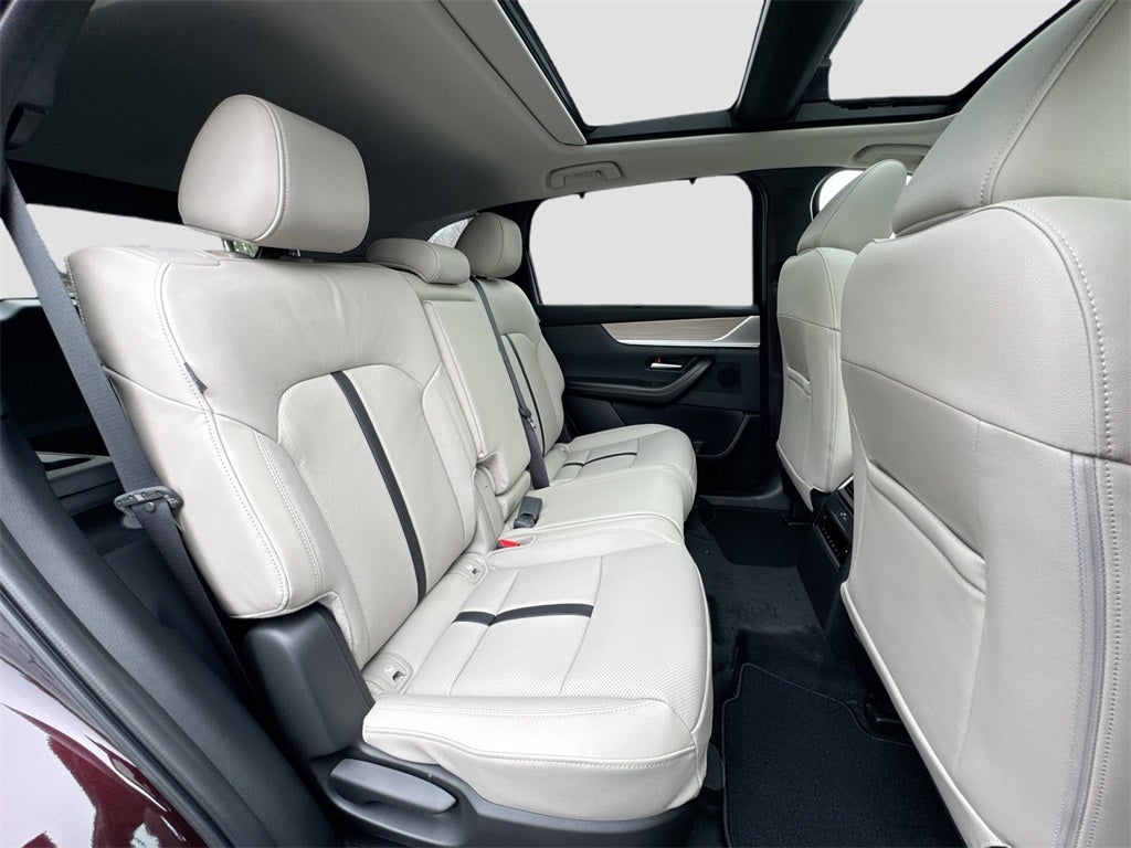 Inside, enjoy premium comfort with heated and ventilated front seats, heated second-row seats, heated steering wheel, 8-way power driver's seat with lumbar and memory, 8-way power passenger seat, and three-zone automatic climate control. Stay connected with 12.3-inch color center display, wireless Apple CarPlay and Android Auto, Bluetooth® hands-free audio, Mazda Connected Services, Alexa Built-In, and a Bose 12-speaker audio system. Convenience features include a power panoramic moonroof, hands-free power rear liftgate, and wireless phone charger.