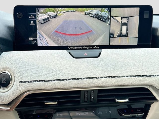 Safety is comprehensive and includes a backup camera plus advanced driver assistance technologies such as blind spot monitoring, lane departure warning system, lane keep assist, emergency lane keeping, driver monitoring, driver attention alert, traffic sign recognition, smart brake support, smart brake support rear, front cross traffic alert with braking, rear cross traffic alert, secondary collision reduction, Mazda radar cruise control, cruising and traffic support, front and rear parking sensors, 360 degree view monitor with see through view and trailer hitch view, rear seat alert, frontal knee curtain and side impact airbags, anti theft engine immobilizer, and burglar alarm.