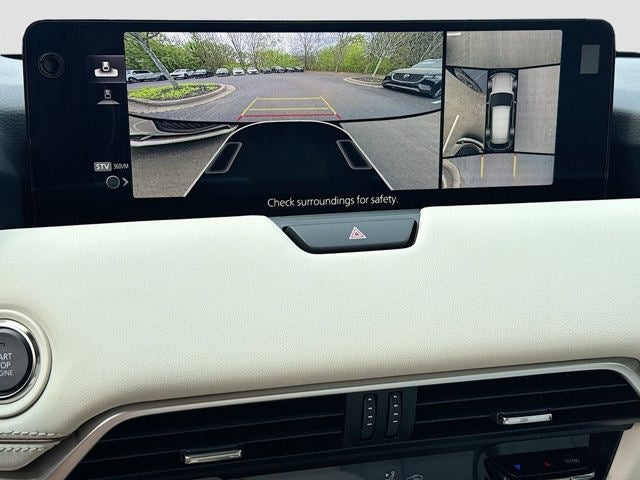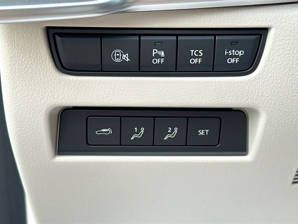 Safety is comprehensive and includes every advanced feature Mazda offers in this trim such as blind spot monitoring, lane departure warning system, lane keep assist, emergency lane keeping, driver monitoring, driver attention alert, rear seat alert, traffic sign recognition, smart brake support, smart brake support rear, front cross traffic alert with braking, rear cross traffic alert, secondary collision reduction, Mazda radar cruise control, cruising and traffic support, front and rear parking sensors, 360 degree view monitor with see through view and trailer hitch view, frontal knee curtain and side impact airbags, anti theft engine immobilizer, and burglar alarm.