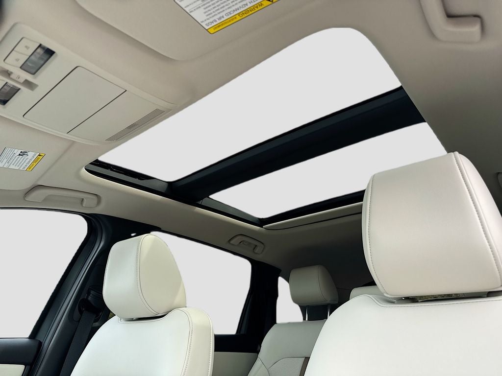 Exterior features include 21 inch black alloy wheels, power panoramic moonroof, hands free power rear liftgate, adaptive front lighting system, LED headlights with auto on off, rain sensing windshield wipers, heated power folding side mirrors with memory, piano black honeycomb grille, aluminum roof rails, and rear privacy glass.