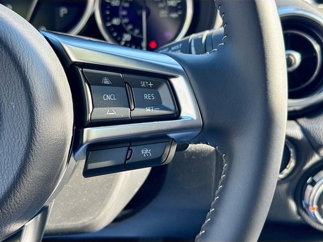 This MX‑5 Miata RF GT is loaded with advanced safety technology including: Backup camera Anti lock braking system with electronic brake distribution and brake assist Smart Brake Support Blind Spot Monitoring Rear Cross Traffic Alert Lane Departure Warning System Traffic Sign Recognition Mazda Radar Cruise Control Distance and Speed Alert Vehicle Exit Warning Driver Attention Alert High Beam Control Adaptive Front Lighting System Dynamic Stability Control Traction Control System Dual front airbags Front side impact airbags Side impact door beams Secondary Collision Reduction Tire Pressure Monitoring System