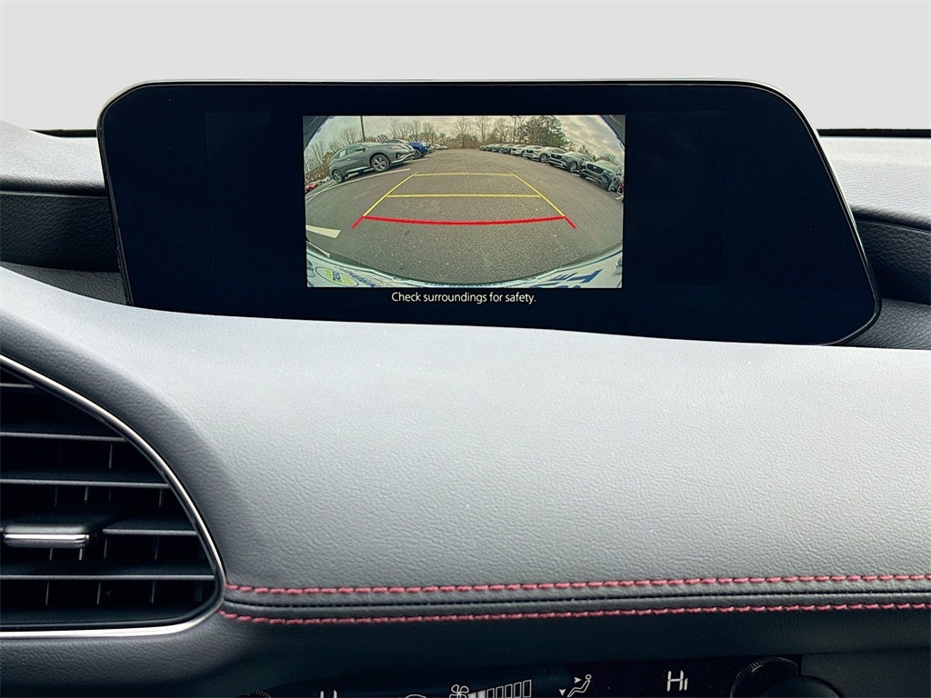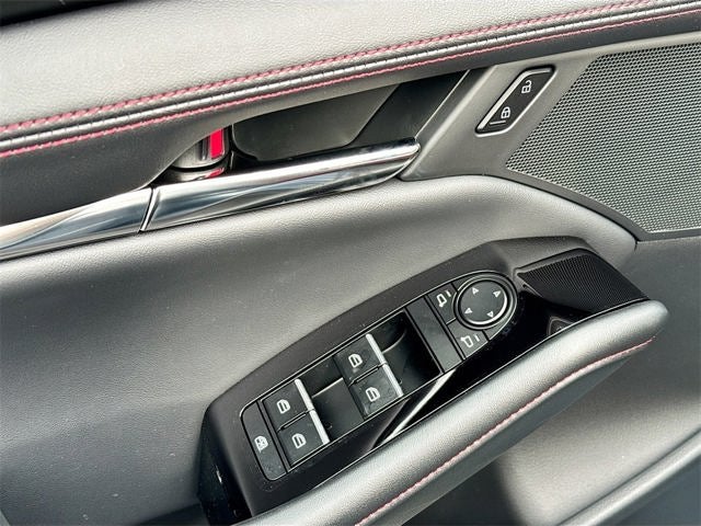 Inside the cabin, you will enjoy upscale comfort with Red Leather Trimmed Seats, a Power Driver Seat with Lumbar Support, Driver Memory with Two Positions, Heated Front Seats, Dual Zone Automatic Climate Control, an 8.8 inch Center Display, Wireless Apple CarPlay and Wireless Android Auto, Wireless Phone Charging, Alexa Built In, Mazda Connected Services, an Eight Speaker Audio System, Illuminated Vanity Mirrors, Bluetooth® Hands Free Audio, and a Rear Armrest with Cupholders.