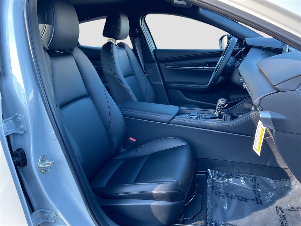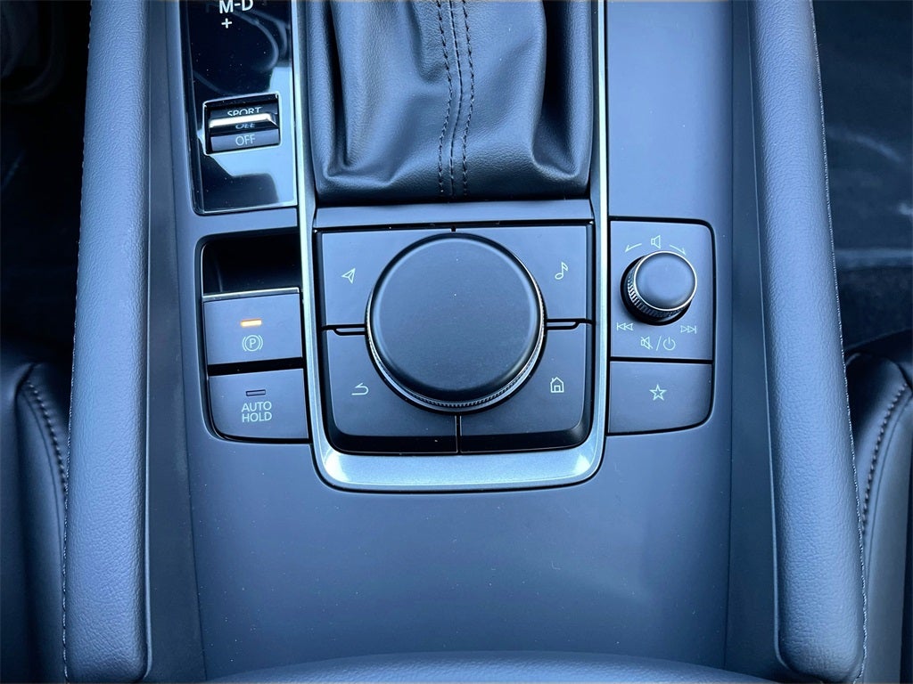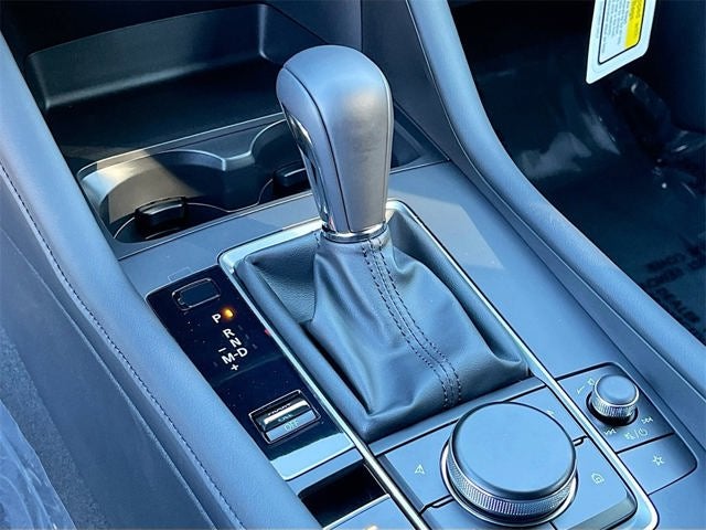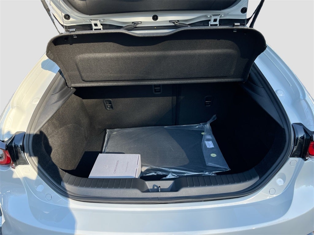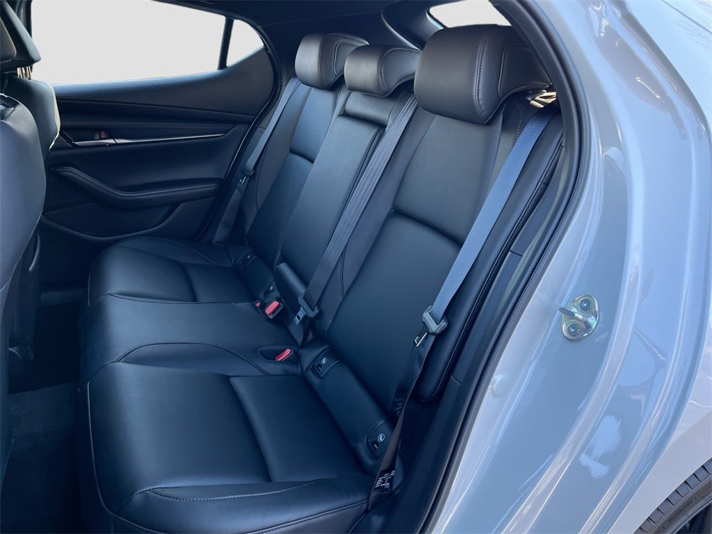 Inside, the Mazda3 Hatchback offers premium comfort and connectivity with leatherette-trimmed seats, dual-zone automatic climate control, an 8.8-inch color center display, Alexa Built-In, Android Auto and Apple CarPlay, Bluetooth® hands-free technology, and Mazda Connected Services. Additional conveniences include push-button start, advanced keyless entry, electronic parking brake, and a 60/40 split fold-down rear seat for versatile cargo space. The exterior stands out with 18-inch black alloy wheels, LED headlights and taillights, rain-sensing wipers, and black heated power side mirrors with turn lamps.