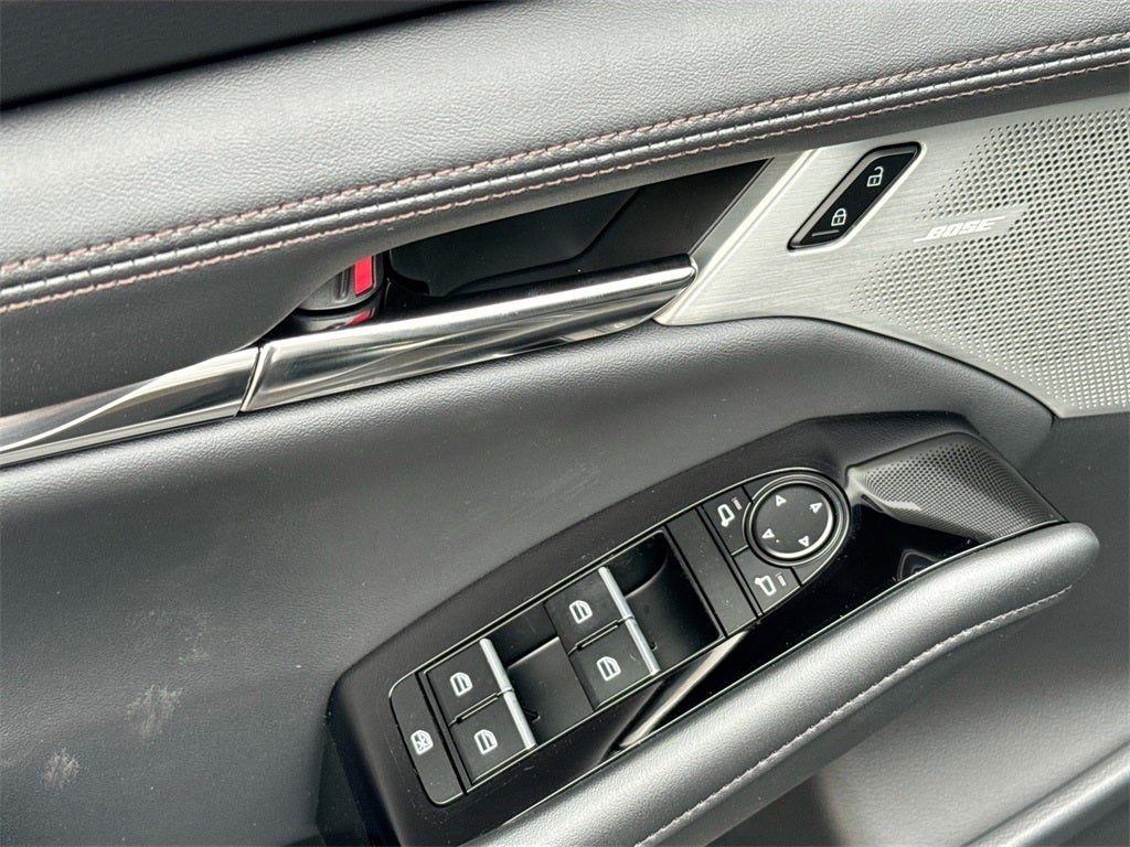 Convenience & Comfort: Heated leather-trimmed seats, heated steering wheel, power driver seat with lumbar support and memory, dual-zone automatic climate control, Alexa Built-In, wireless Android Auto and Apple CarPlay, wireless phone charger, Bose 12-speaker premium audio, Mazda Online Navigation, and a frameless auto-dimming rearview mirror with HomeLink.