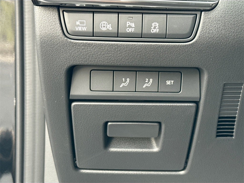 Safety & Driver Assistance: Blind Spot Monitoring, Rear Cross Traffic Alert, Lane Departure Warning, Lane Keep Assist, Driver Attention Alert, Traffic Sign Recognition, Adaptive Front Lighting System, Mazda Radar Cruise Control with Stop & Go, Smart Brake Support, Rear Seat Alert, Front & Rear Parking Sensors, 360 View Monitor, and Tire Pressure Monitoring System.