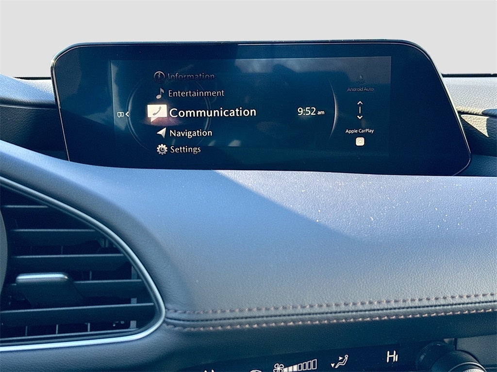 Inside the cabin you will enjoy Dual Zone Automatic Climate Control, Mazda Advanced Keyless Entry, Push Button Start, a Leather Wrapped Steering Wheel, a Leather Wrapped Shift Knob, Rear Armrest with cup holders, an eight point eight inch Color Center Display, Mazda Connected Services, AM FM eight speaker audio, USB type C inputs, Bluetooth® Hands Free Phone and Audio, Android Auto, Apple CarPlay, Illuminated Vanity Mirrors, Carpeted Floor Mats and an overhead console with a sunglasses holder.