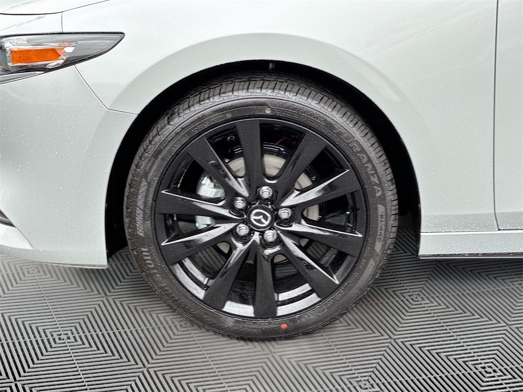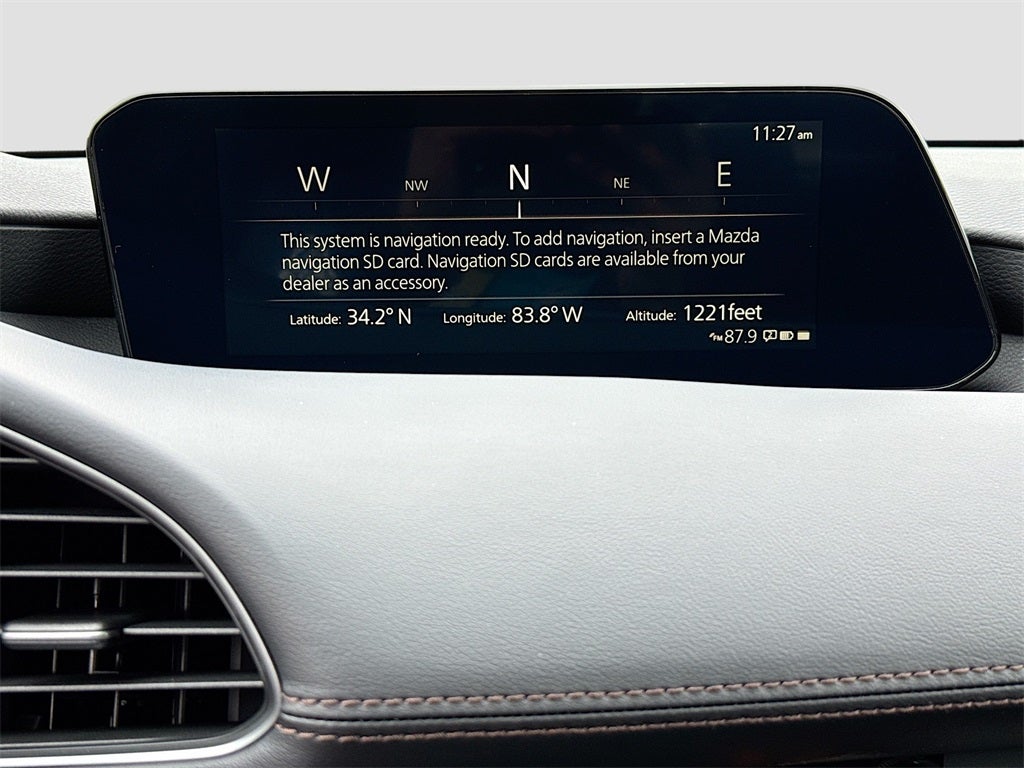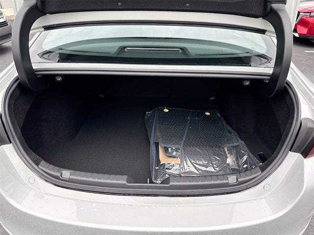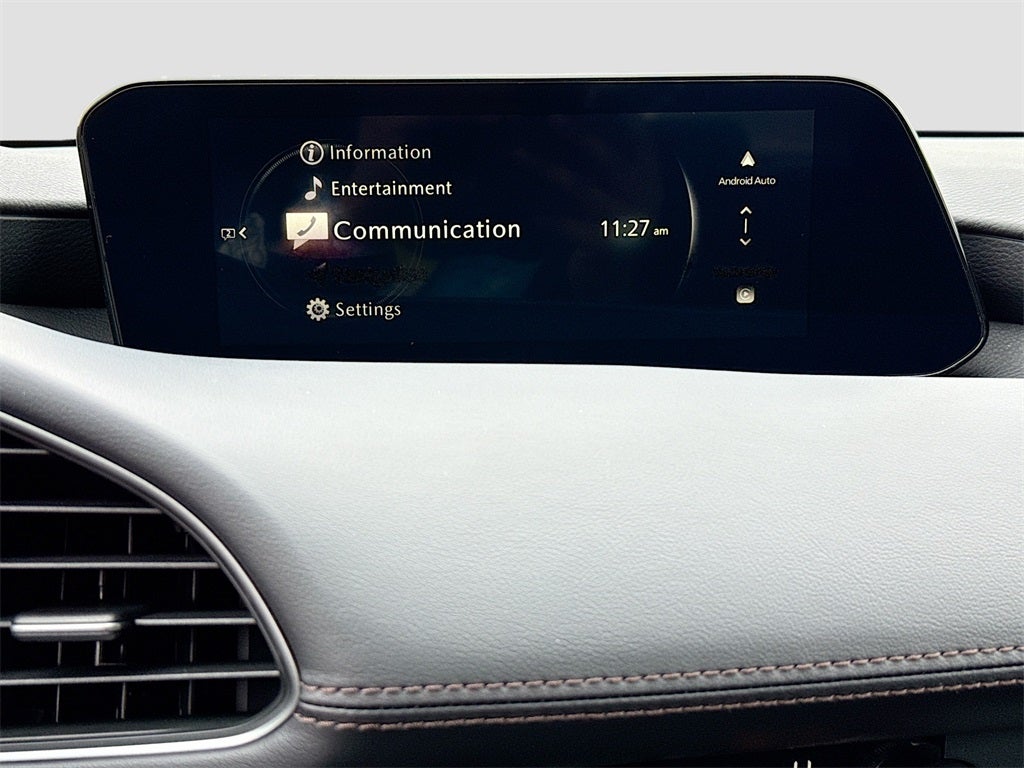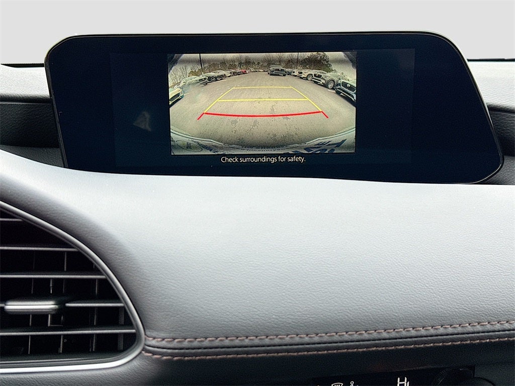 Inside the cabin you’ll find leatherette trimmed seats dual zone automatic climate control a leather wrapped steering wheel a leather wrapped shift knob an eight point eight inch center display Mazda Connected Services Alexa built in Bluetooth® hands free audio AM FM eight speaker audio two USB C inputs Android Auto Apple CarPlay a sixty forty split fold down rear seat power windows power door locks Mazda Advanced Keyless Entry an electronic parking brake carpeted floor mats an overhead console with sunglass holder and illuminated vanity mirrors. Added accessories include all weather high wall floor mats and wheel locks.