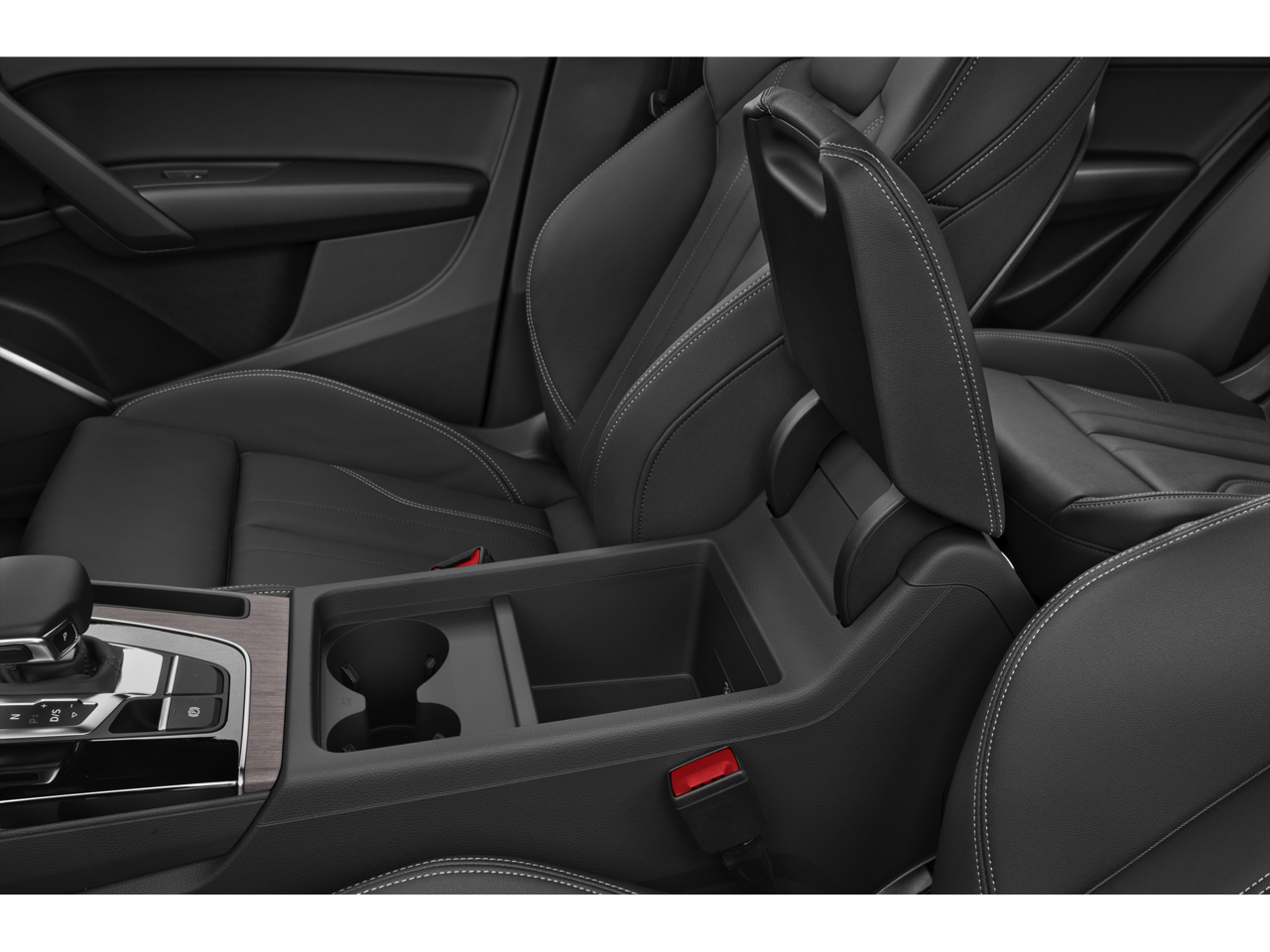 This Audi Q5 Premium Plus features aggressive S line styling, 19 bi-color alloy wheels, a panoramic sunroof, power liftgate, LED headlights with automatic high beams, roof rails, and sleek aluminum exterior accents for a sporty, upscale presence.