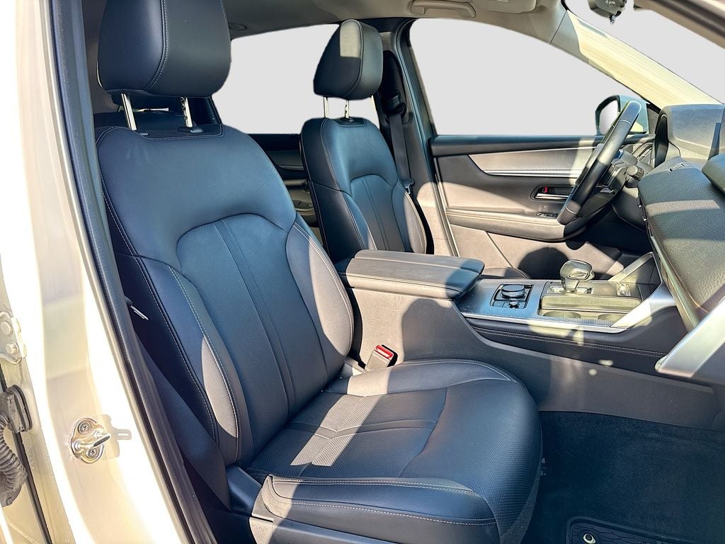 This Preferred Plus AWD trim offers a premium driving experience with standout features including second row captains chairs heated front seats leather trimmed seating power sunroof head up display leather wrapped steering wheel Mazda Radar Cruise Control with stop and go distance pacing with traffic stop and go HomeLink garage door transmitter dual zone automatic climate control rear air vents power liftgate deep tinted glass roof rails and 19 inch alloy wheels. The spacious interior includes a third row seat, making it ideal for families, road trips, and daily driving.