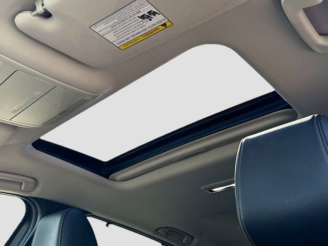 Exterior features include 19 inch alloy wheels, all season tires, heated power mirrors with turn signals, rear privacy glass, aluminum roof rails, power moonroof, power rear liftgate, LED headlights with auto on and off, LED daytime running lights, high beam control, rain sensing windshield wipers, and a body colored rear roof spoiler.