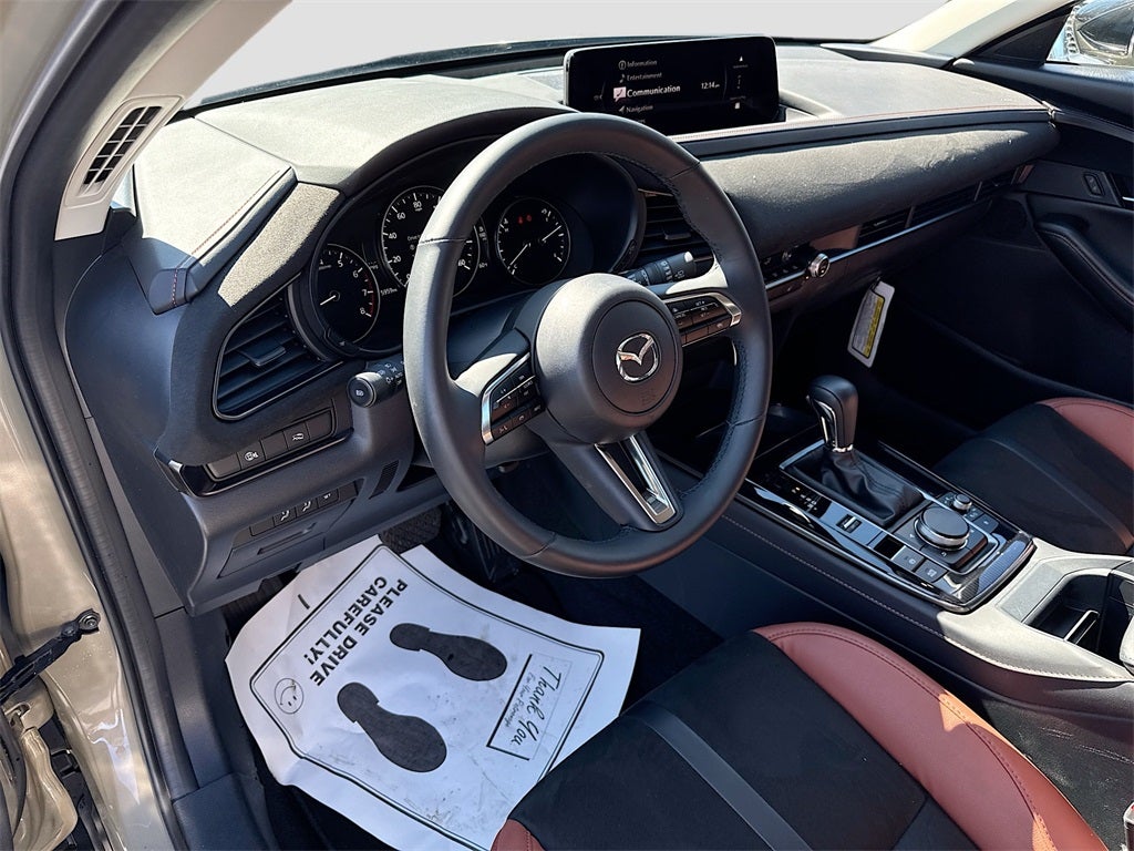 Experience style, capability and turbocharged performance in this 2025 Mazda CX30 2.5 Carbon Turbo AWD finished in the striking Zircon Sand Metallic exterior paired with a Terracotta with Black interior. This all wheel drive crossover delivers an engaging drive thanks to the SKYACTIV G 2.5L Dynamic Pressure Turbo engine matched with the 6 Speed SKYACTIV Drive automatic transmission. Whether you are driving through Gainesville or headed toward Flowery Branch, Oakwood, Buford, Dahlonega or Cumming, this CX30 offers an elevated blend of power, comfort and refinement.