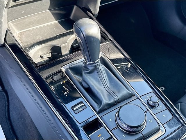 Inside the cabin you will enjoy leatherette trimmed seats, dual zone automatic climate control with rear vents, Mazda Advanced Keyless Entry, Alexa Built In, sixty forty split folding rear seats, illuminated vanity mirrors, overhead console with glasses holder, rear armrest with cup holders and carpeted floor mats. Technology includes an eight point eight inch color center display, multi function commander control, Mazda Connected Services, Apple CarPlay, Android Auto, Bluetooth® hands free audio, two USB C inputs, AM FM six speaker audio system and a rear view monitor for confident parking and reversing.